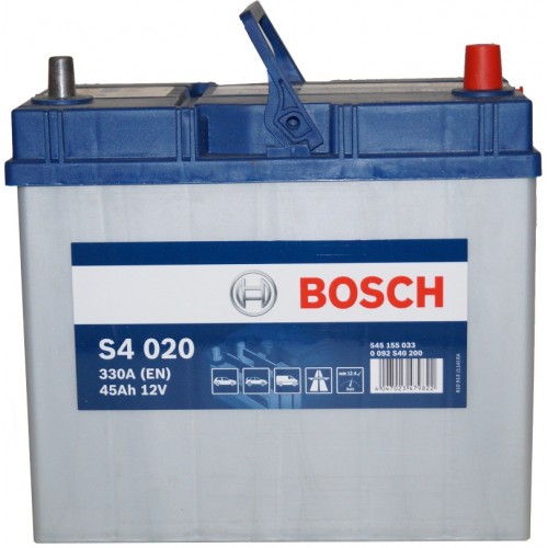 Bosch S4 020 (6СТ-45 R+) — это качественный и надёжный аккумулятор для легковых автомобилей с умеренным потреблением электроэнергии. С ёмкостью 45 Ач и пусковым током 330 А, он обеспечивает стабильную работу стартера и всех систем автомобиля, особенно в холодное время года.