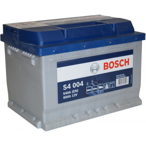Bosch S4 004 (6СТ-60 R+) — аккумулятор ёмкостью 60 Ач с пусковым током 540 А, предназначен для автомобилей, оснащённых современными электронными системами и дополнительными электроприборами. Он обеспечивает стабильный запуск двигателя в любых погодных условиях и отлично справляется с нагрузками городской езды и длительных поездок.