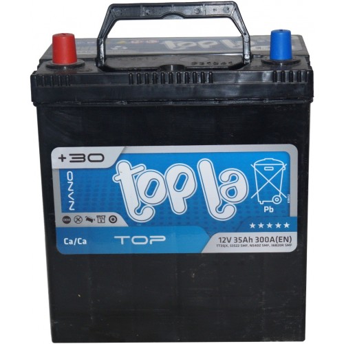 Topla 6СТ-35 L+ Top — компактный и надёжный автомобильный аккумулятор, идеально подходящий для автомобилей малого и среднего класса с азиатским типом корпуса (JIS). Обладает ёмкостью 35 А·ч и пусковым током 300 А (EN), обеспечивая уверенный запуск двигателя даже в мороз.