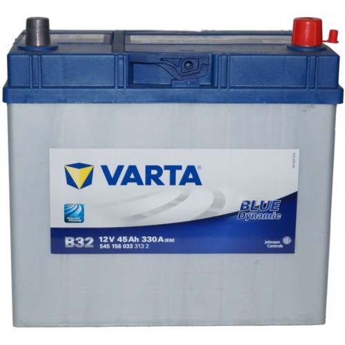 Автомобильный аккумулятор Varta 6СТ-45 BLUE dynamic (B32) 545 156 033 — надежный выбор для автомобилей с азиатским типоразмером и стандартными клеммами.